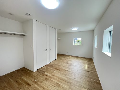 ③将来を考えた2部屋に分ける事のできる子供室。お子様が小さいうちは広々使える空間にすることで生活の幅が広がる。