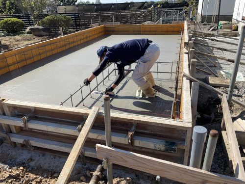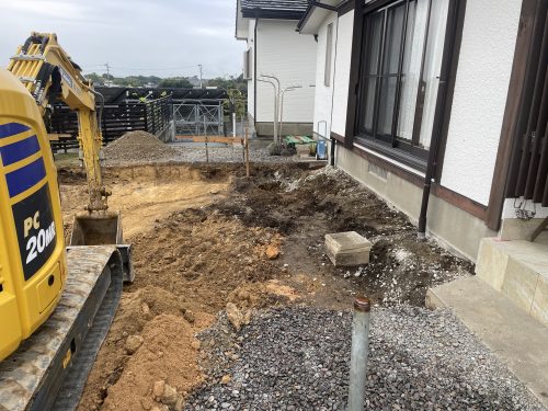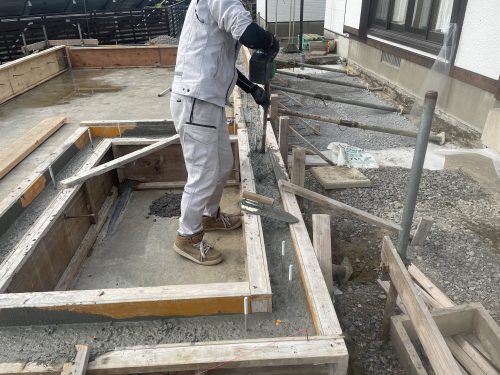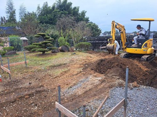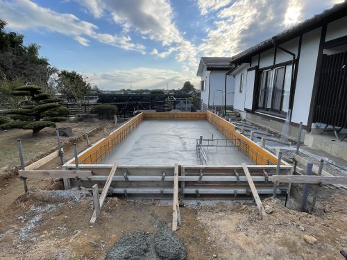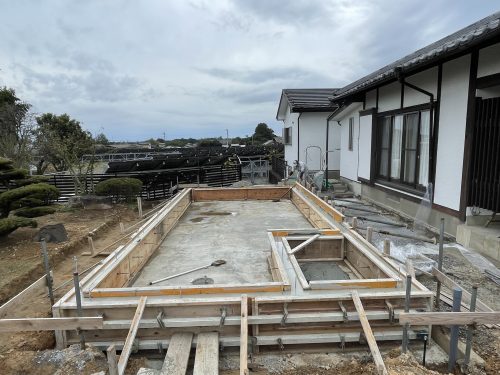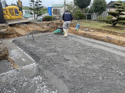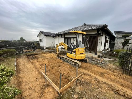 工事名:M事務所新築工事 工事場所:川南町 工事担当:安藤賢次 工事状況:着工~脱枠