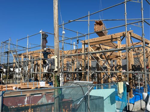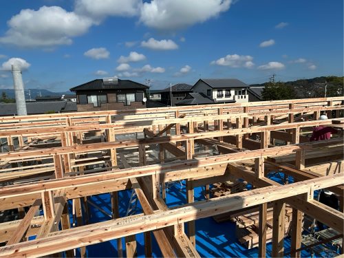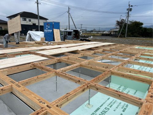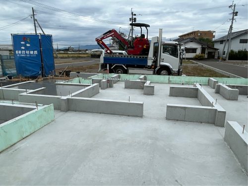工事名:Y様邸新築工事 工事場所:西都市 工事担当:東山昌平 工事状況:着工~外壁工事・PB貼
