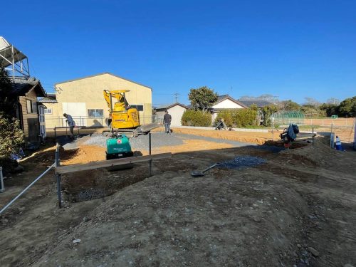 工事名:Y様邸新築工事 工事場所:高鍋町 工事担当:安藤賢次 工事状況:着工~基礎完了
